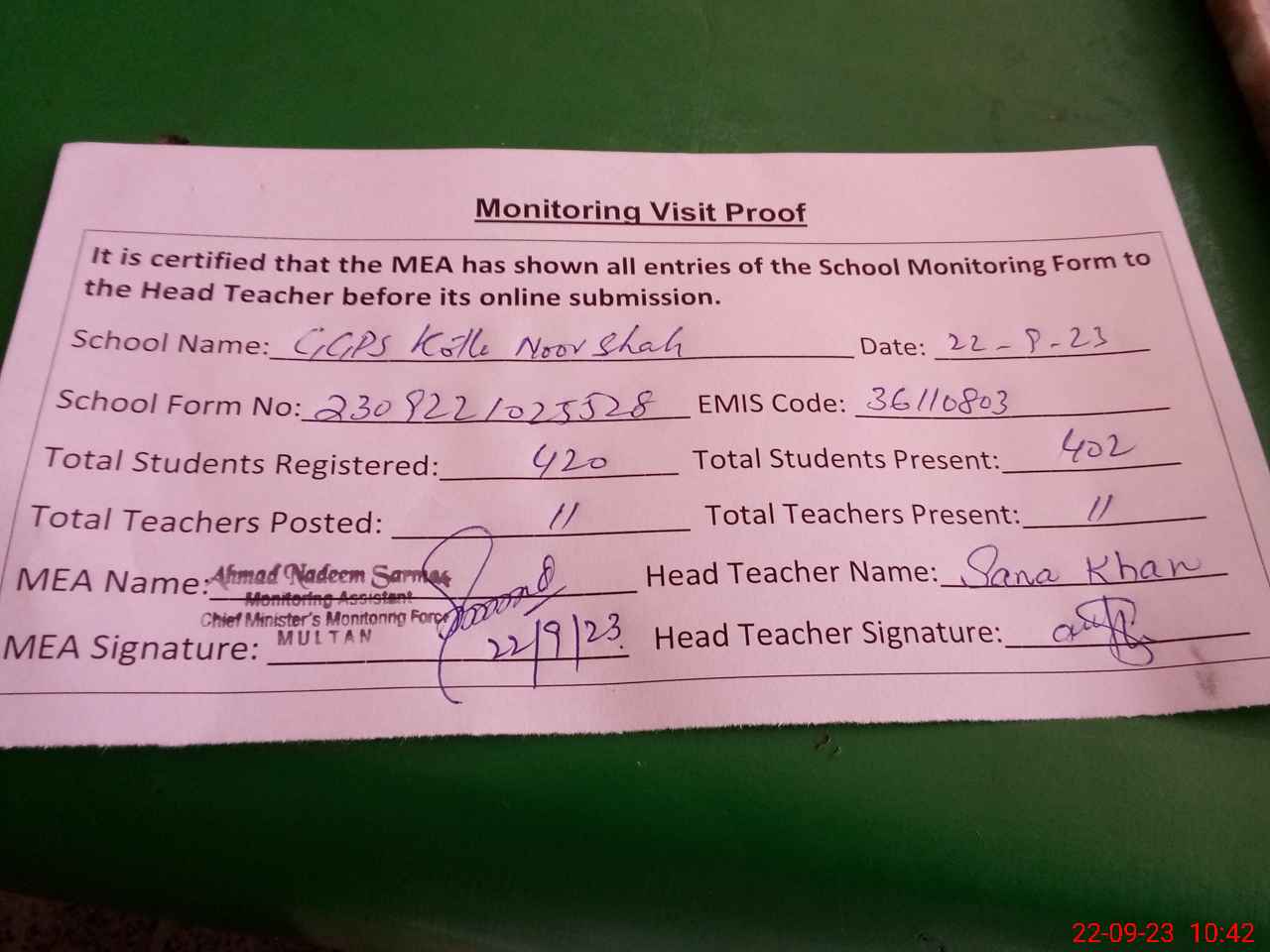 | EMIS Code: 36110803 | Name of School: GGPS KOTLA NOOR SHAH MUZAFARABAD | |||