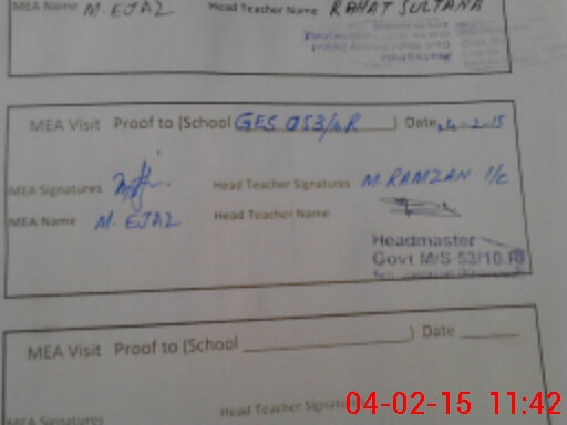 | Attendance Register | Head Teacher | MEA with School | Visit Proof |