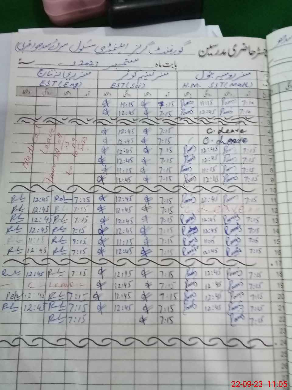| Leave | Duty | Absent | Maternity | Medical | Ex- Pak |