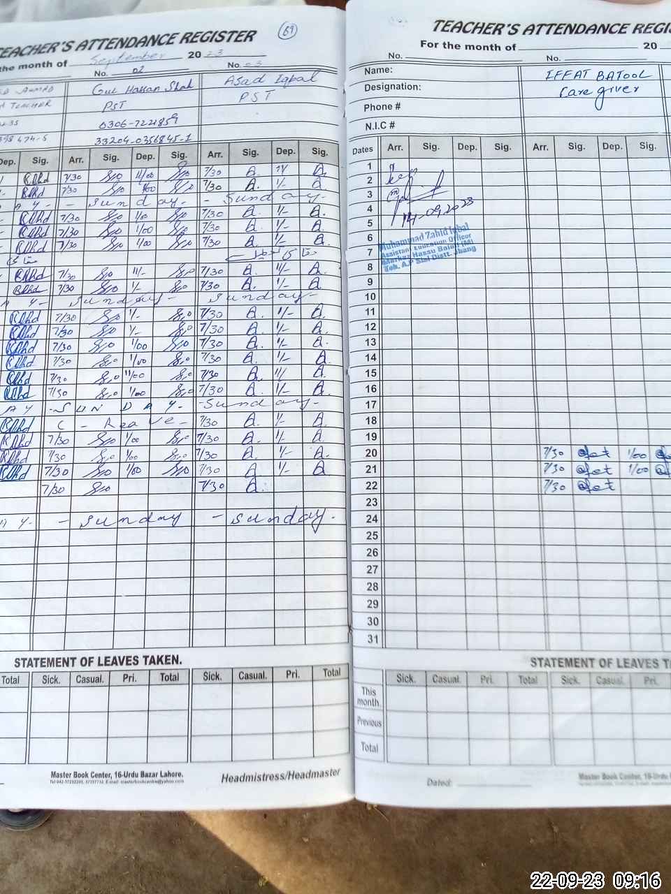 | Name: KH**** Designation: (School Headmaster's/Headmistress's) PST Phone/Cell Number: 03**** |