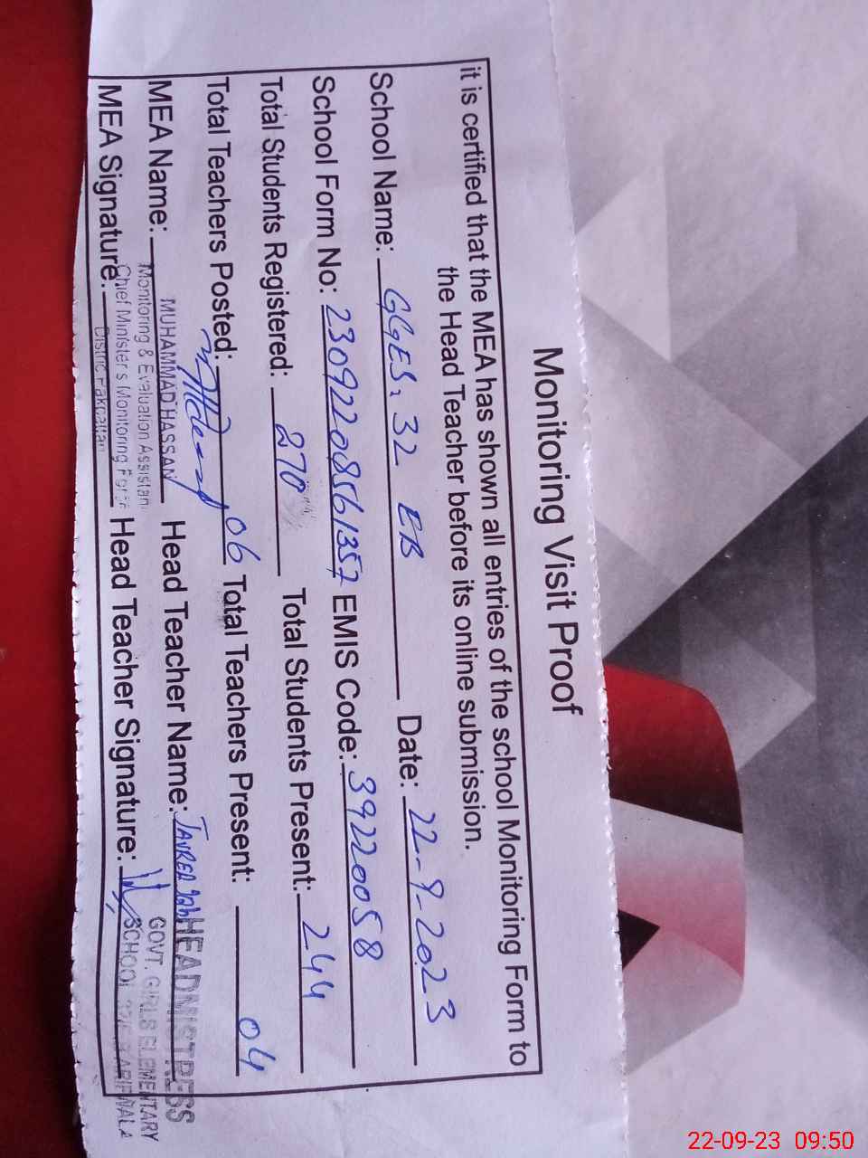 | EMIS Code: 39220058 | Name of School: GGES CHAK NO.32 EB | |||