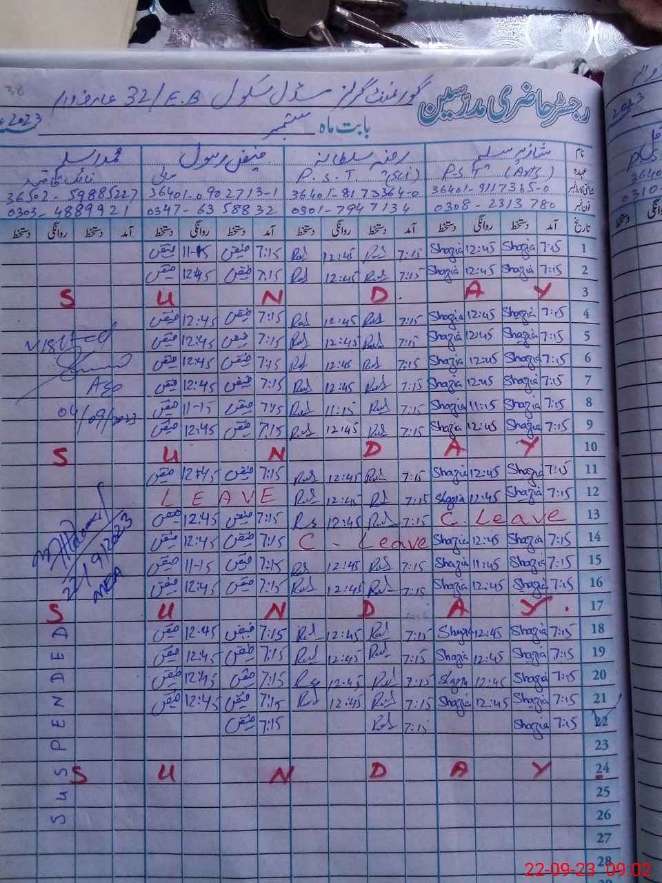 | Name: GO**** SA**** Designation: (School Headmaster's/Headmistress's) EST (SCI) Phone/Cell Number: 03**** |