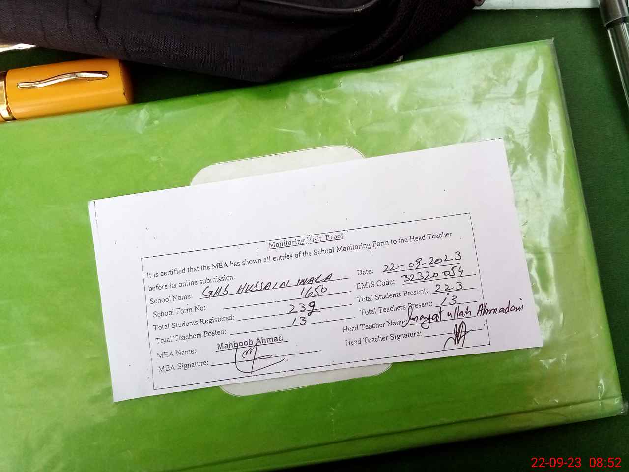| EMIS Code: 32320054 | Name of School: GHS HUSSAIN WALA | |||