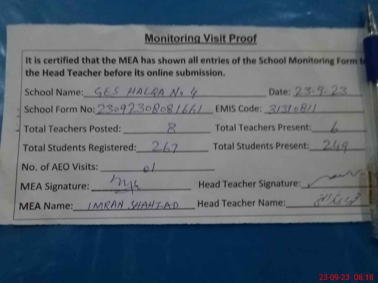 | EMIS Code: 31310811 | Name of School: GES HALQA NO 4 | |||