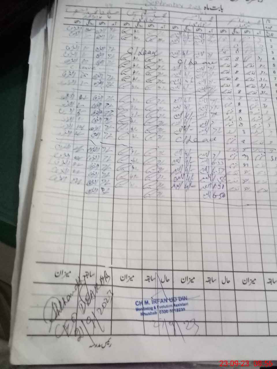 | CNIC | Full Name | Designation | R/C | Absence During Last Calender Month |