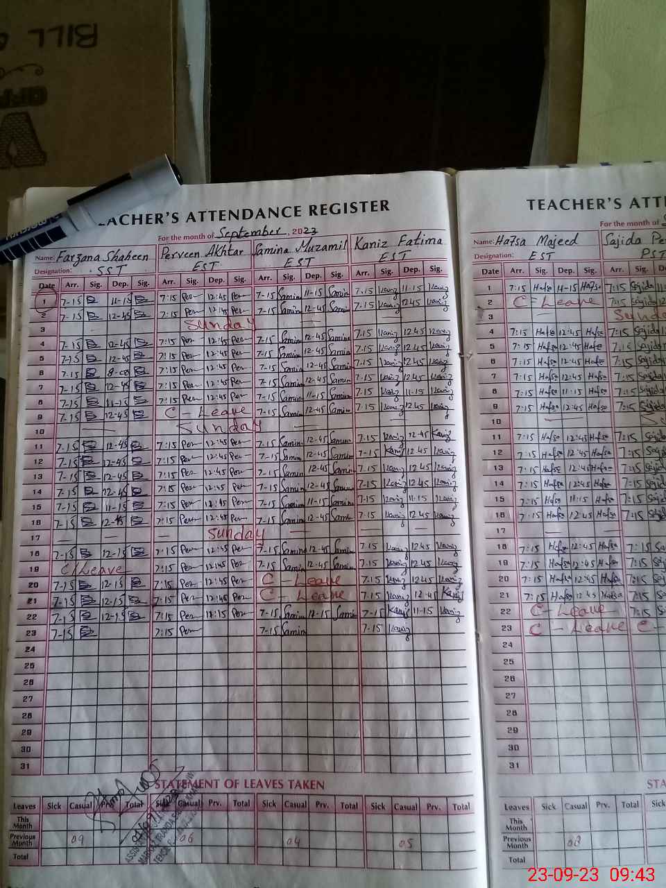 | Leave | Duty | Absent | Maternity | Medical | Ex- Pak |