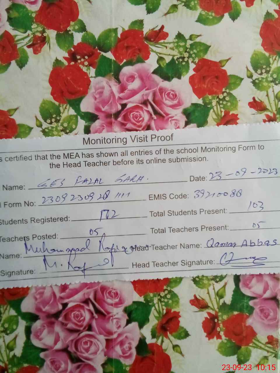| EMIS Code: 39210088 | Name of School: GES FAZAL GARH P.O BOYLE GANJ | |||