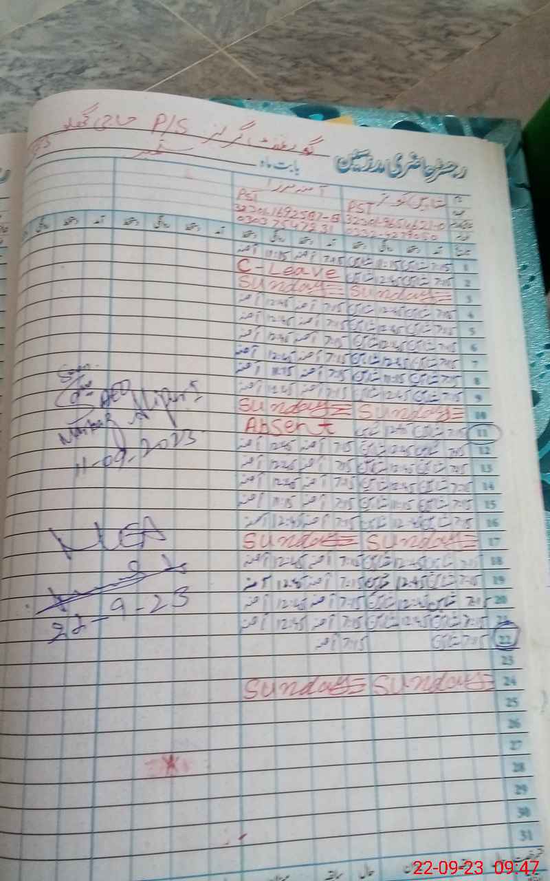 | Name: SH**** KO**** Designation: (School Headmaster's/Headmistress's) PST Phone/Cell Number: 03**** |