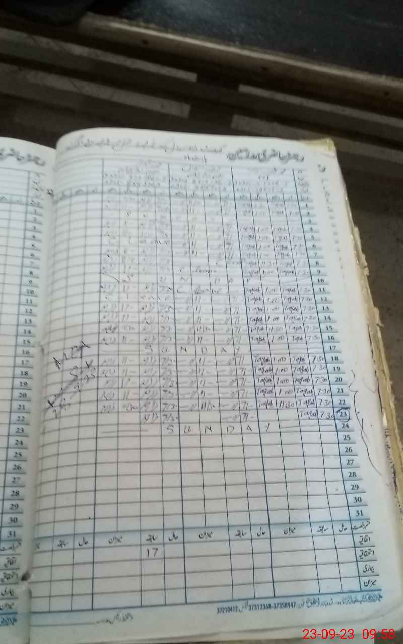 | CNIC | Full Name | Designation | R/C | Absence During Last Calender Month |