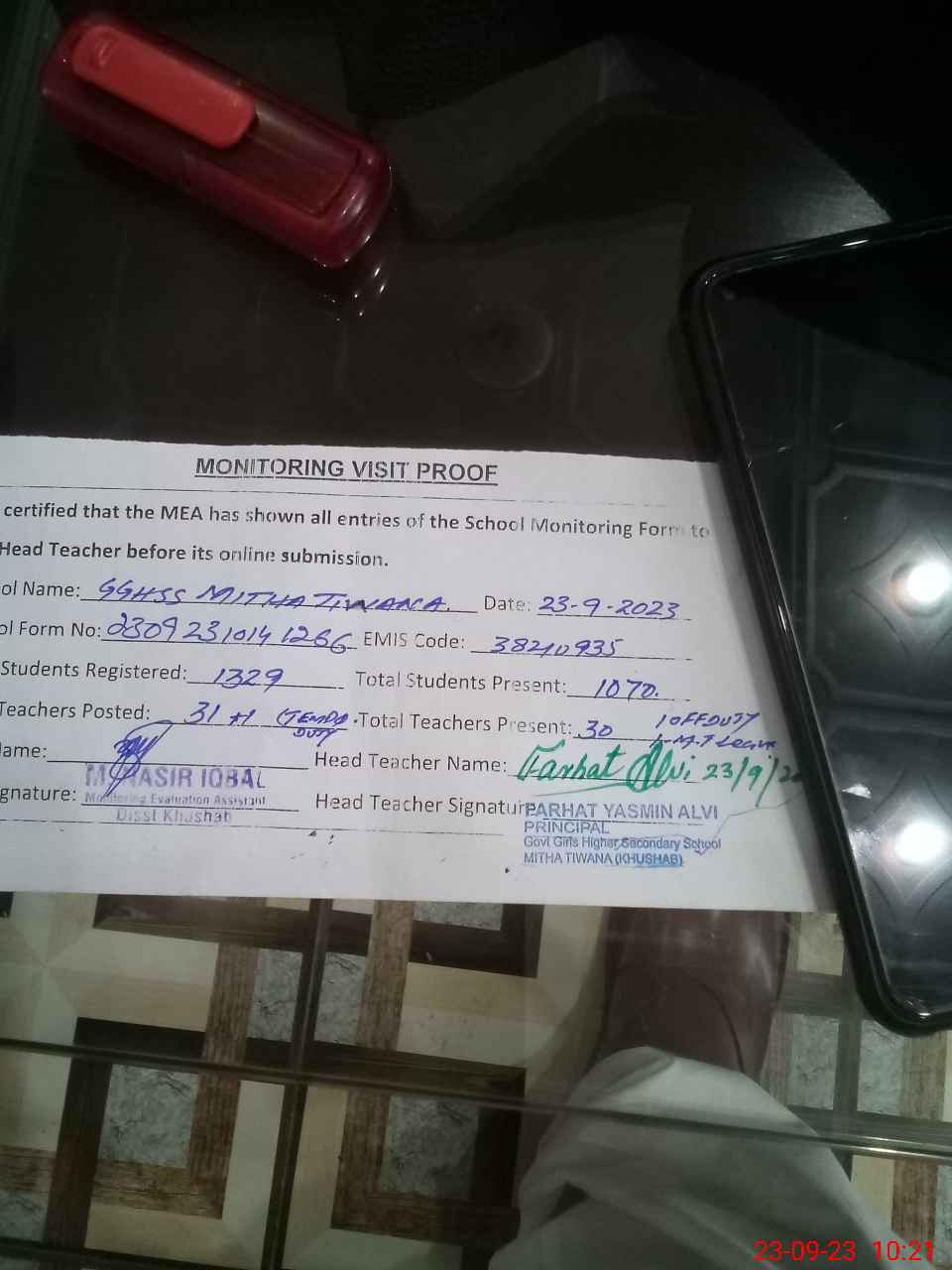 | EMIS Code: 38210935 | Name of School: GGHSS MITHA TIWANA | |||