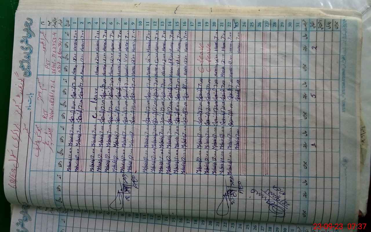 | CNIC | Full Name | Designation | R/C | Absence During Last Calender Month |