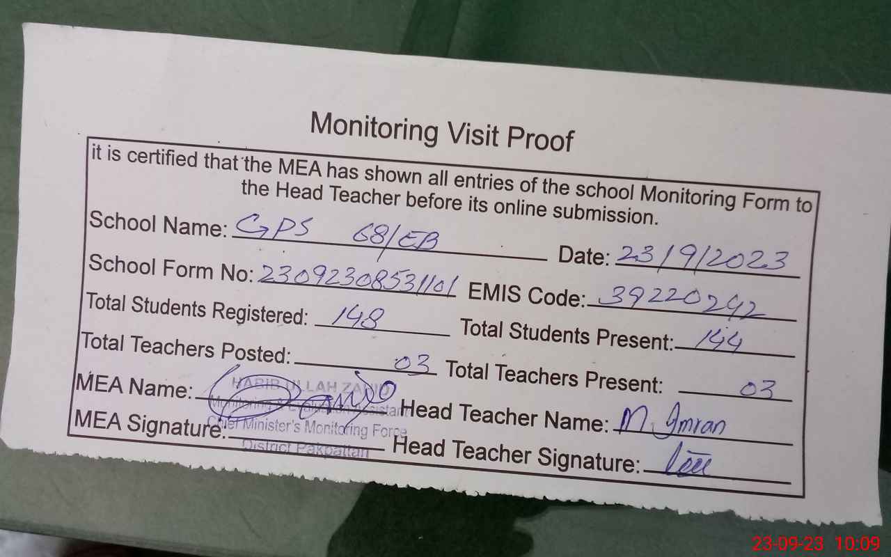 | EMIS Code: 39220242 | Name of School: GPS 68 EB | |||