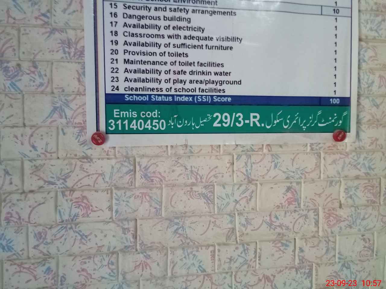 | EMIS Code: 31140450 | Name of School: GGPS CHAK NO. 29/3-R | |||