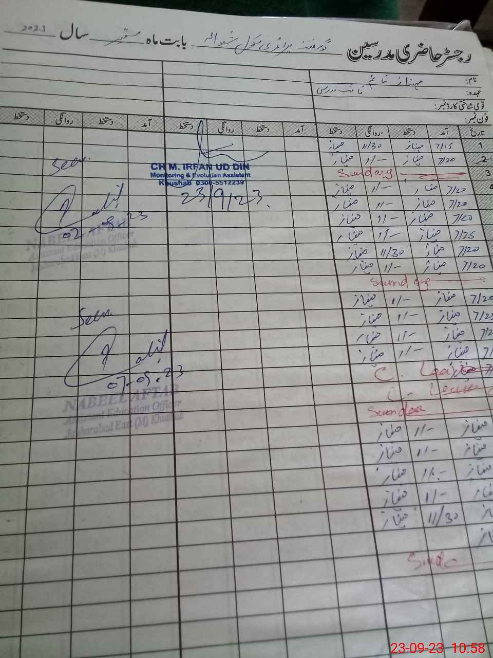 | Name: In**** Az**** Ak**** Designation: (School Headmaster's/Headmistress's) PST Phone/Cell Number: 03**** |