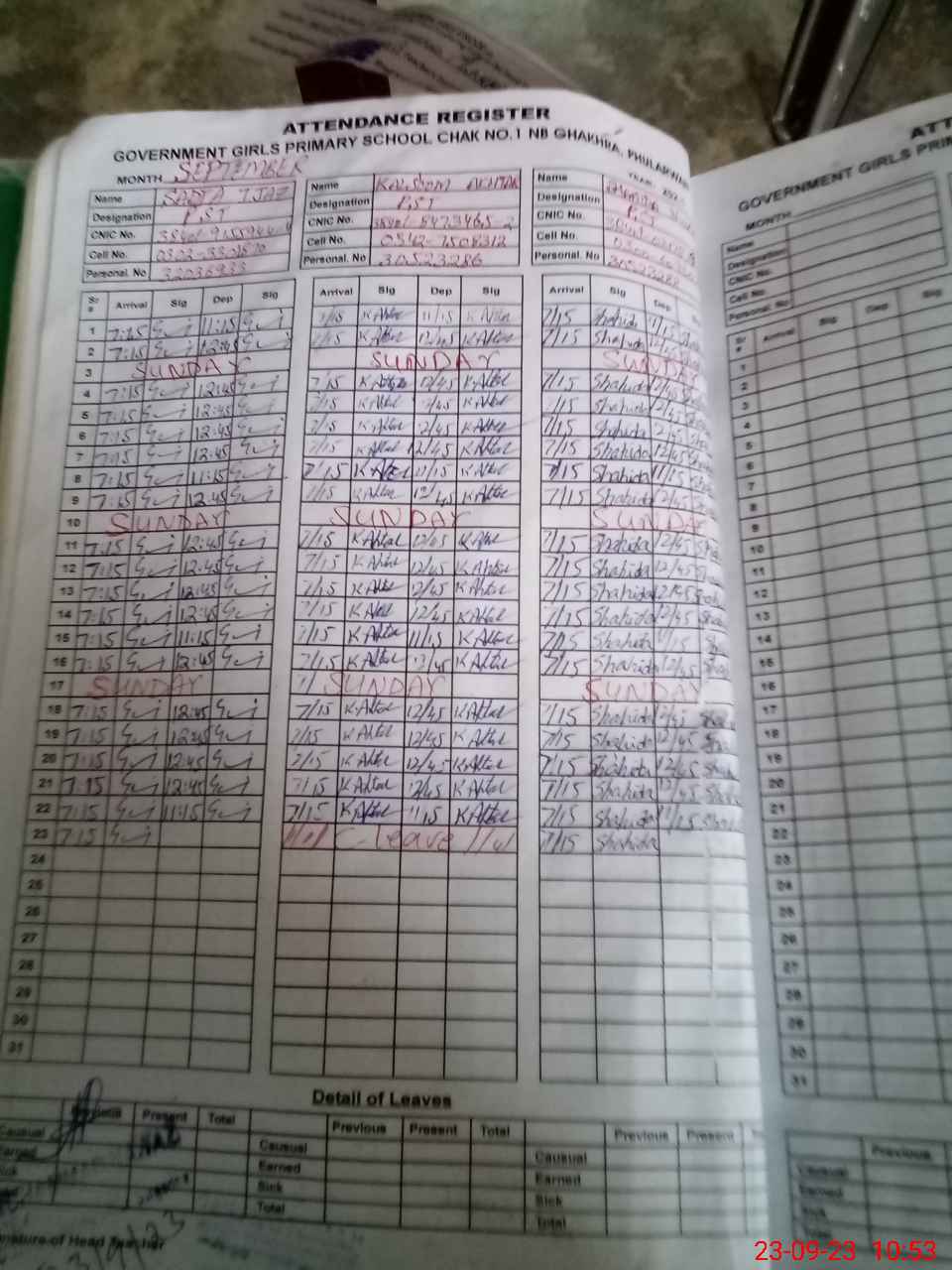 | CNIC | Full Name | Designation | R/C | Absence During Last Calender Month |