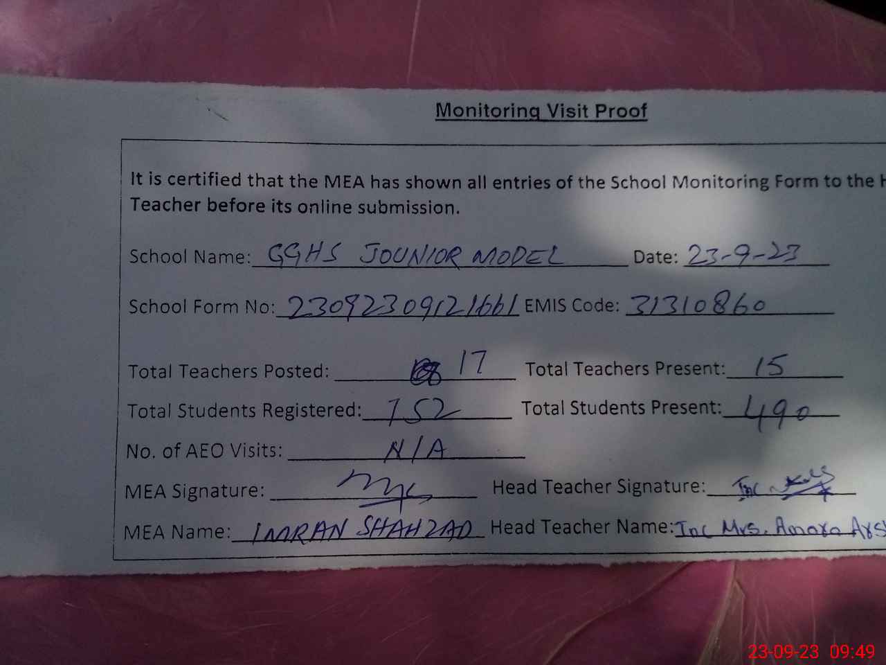| EMIS Code: 31310860 | Name of School: GGHS JUNIOR MODEL KHANPUR | |||