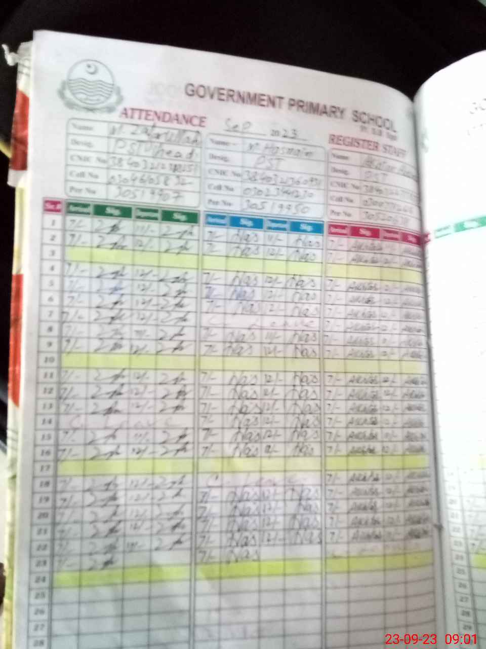 | CNIC | Full Name | Designation | R/C | Absence during last cal. month |