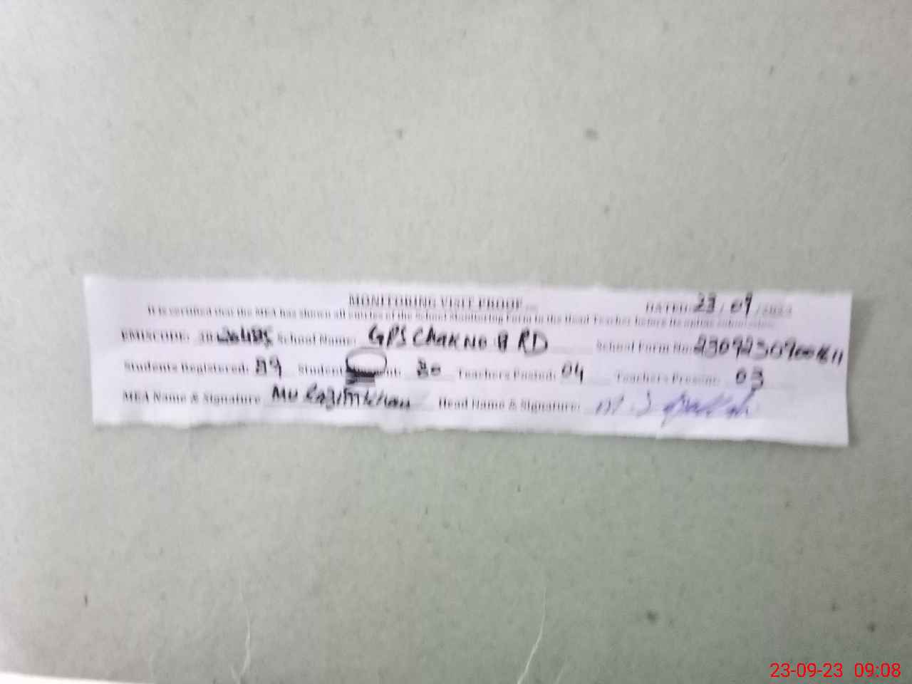 | Attendance Register | Head Teacher | MEA with School | Visit Proof |