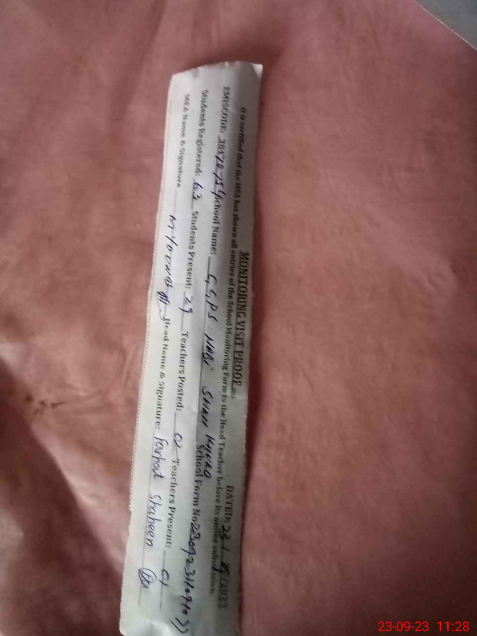 | Attendance Register | Head Teacher | MEA with School | Visit Proof |