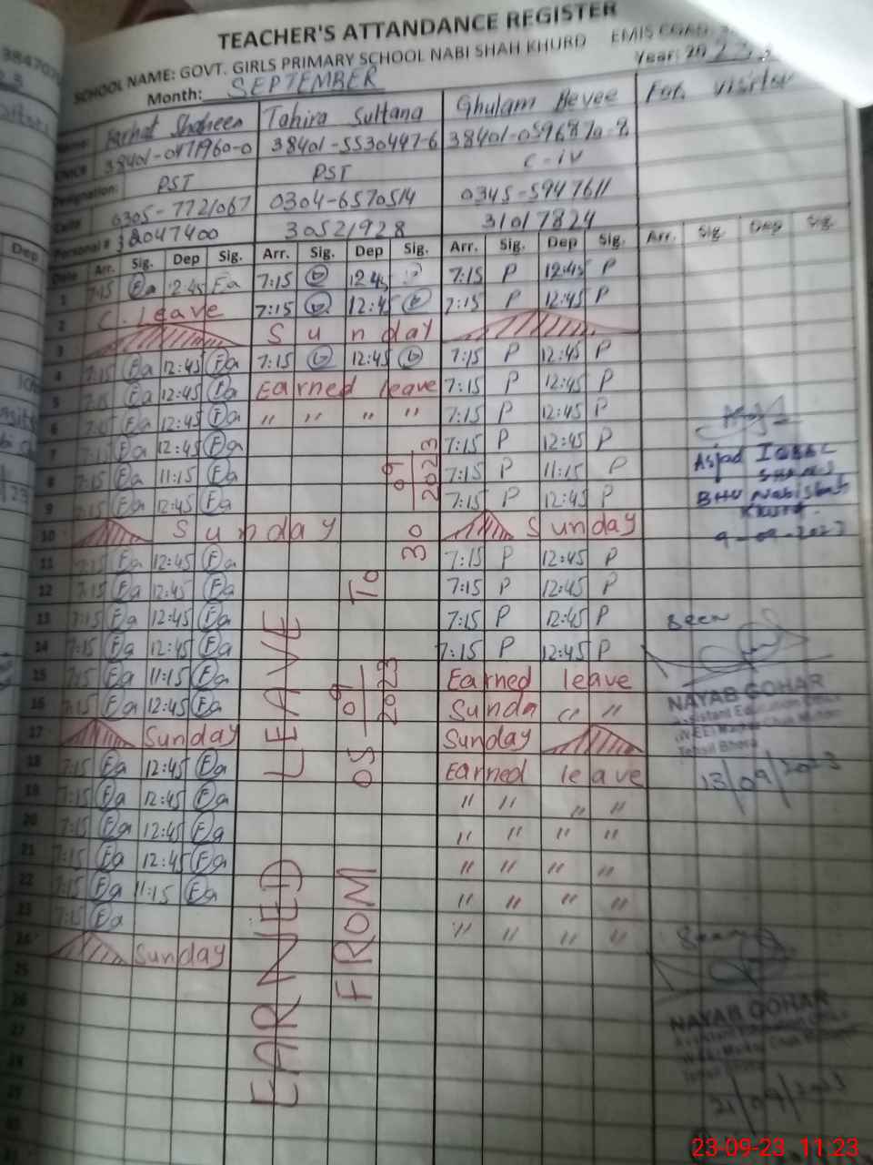 | CNIC | Full Name | Designation | R/C | Absence During Last Calender Month |