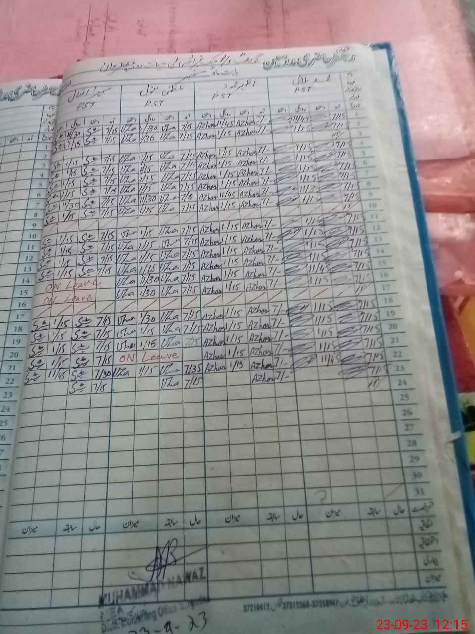 | Name: MU**** BI**** Designation: (School Headmaster's/Headmistress's) PST (SCI-MATH) Phone/Cell Number: 03**** |
