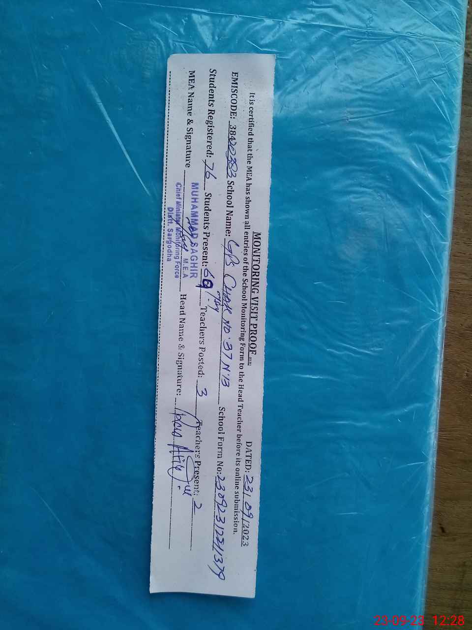 | Attendance Register | Head Teacher | MEA with School | Visit Proof |