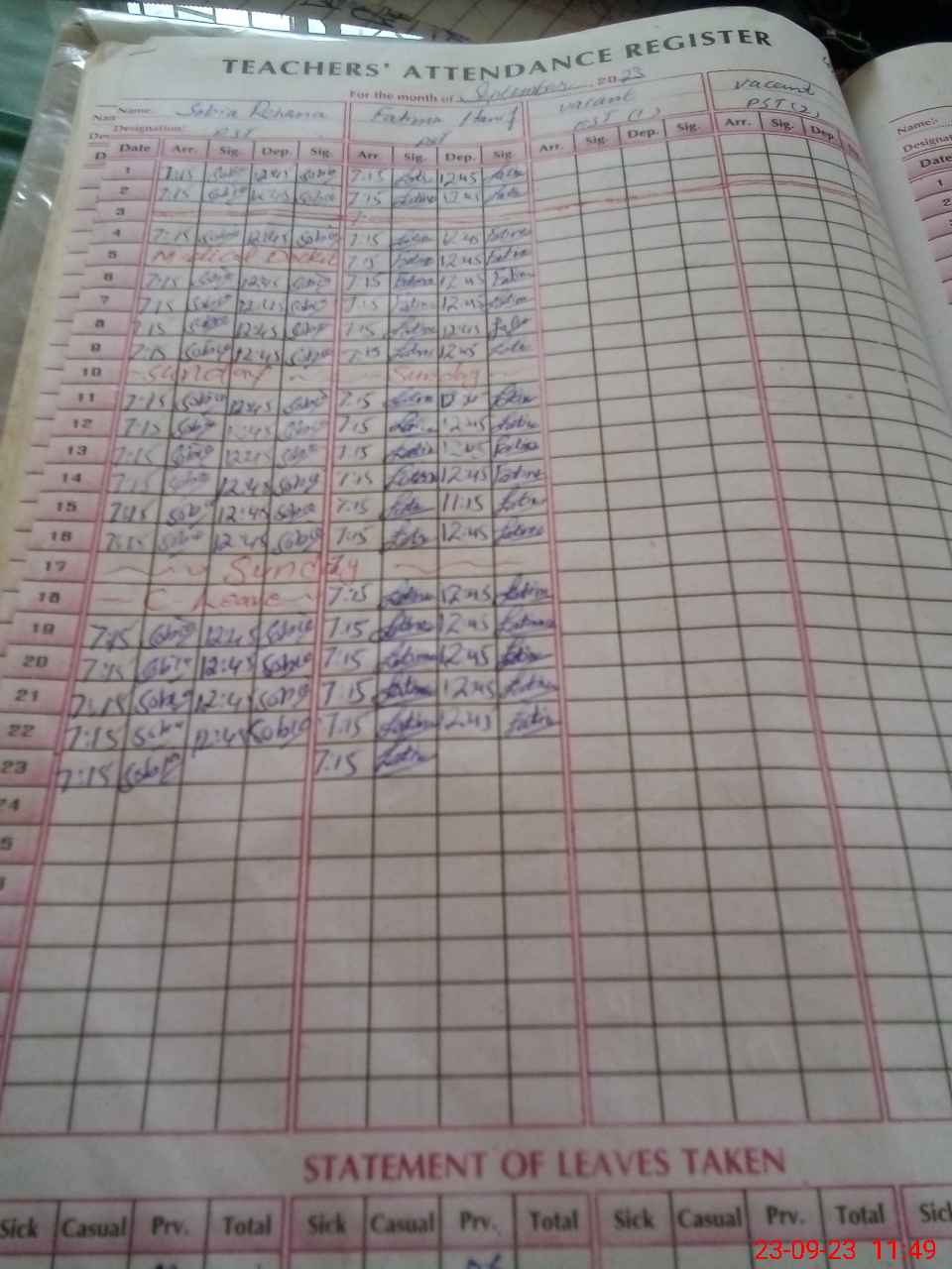 | Name: Me**** Ak**** Designation: (School Headmaster's/Headmistress's) SST,(Science) Phone/Cell Number: 03**** |