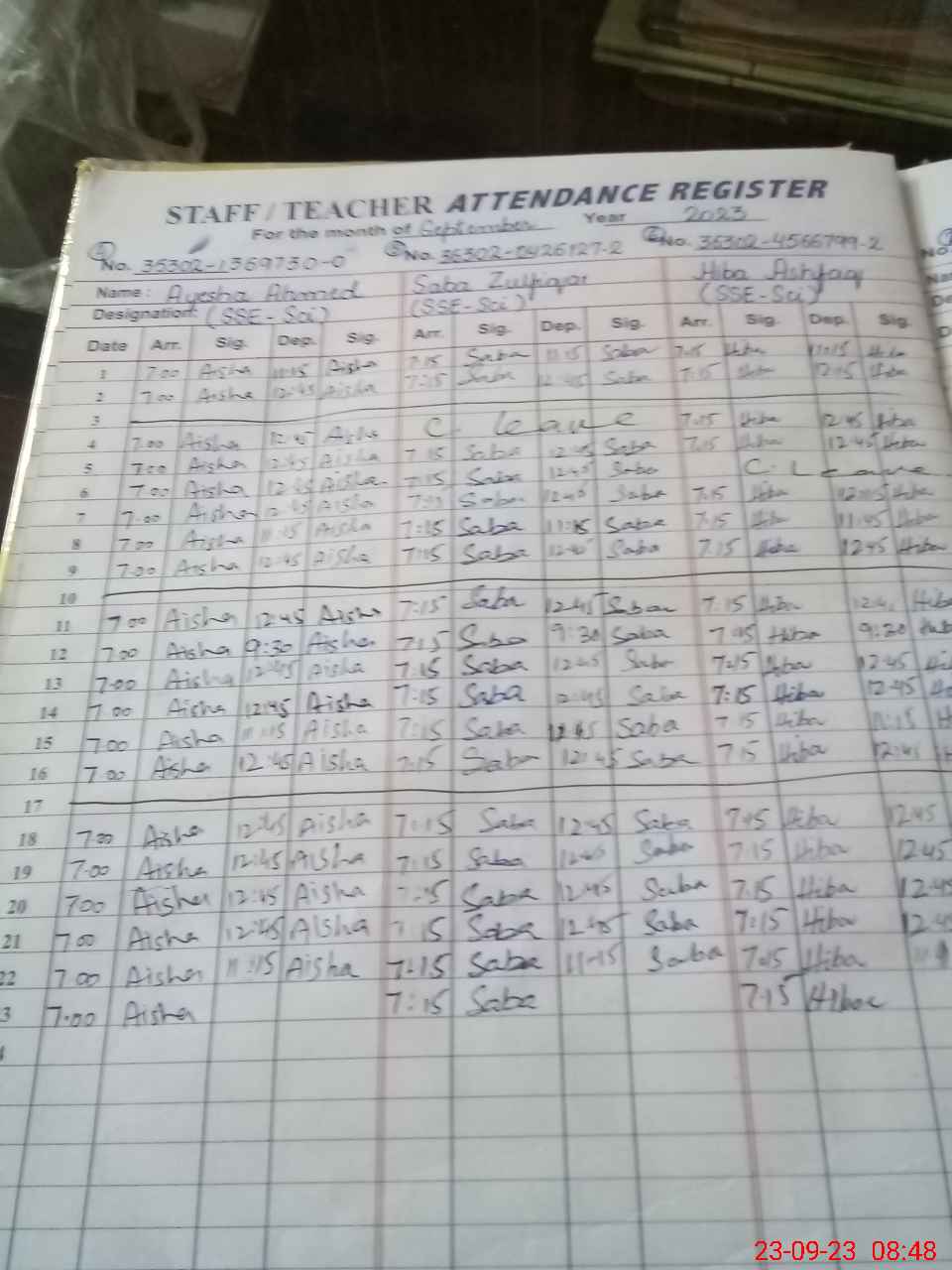 | Name: As**** Ab**** Designation: (School Headmaster's/Headmistress's) SST Incharge Phone/Cell Number: 03**** |