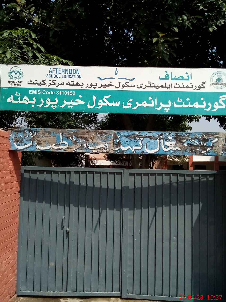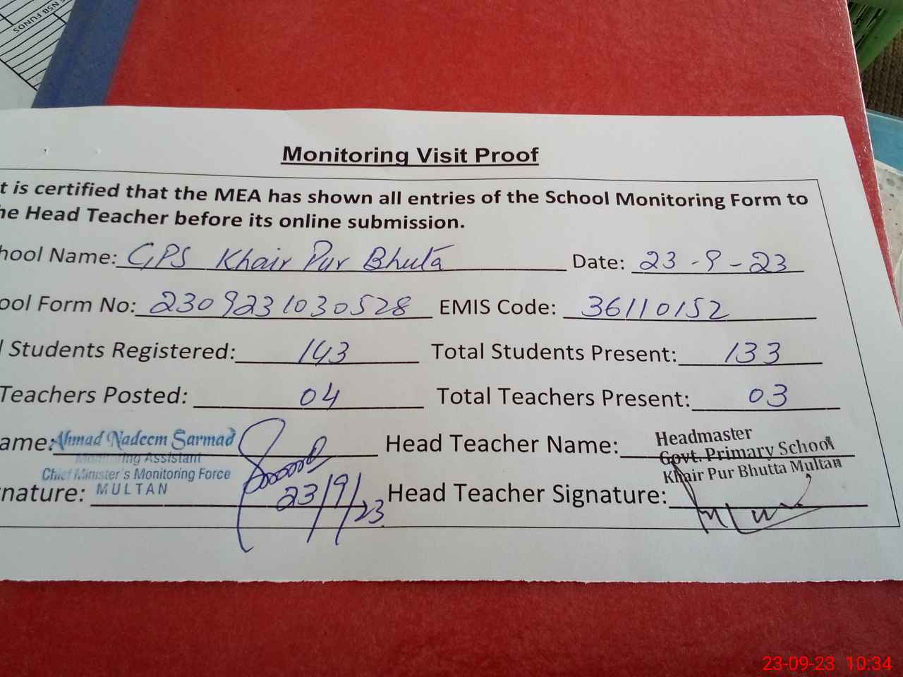 | EMIS Code: 36110152 | Name of School: GPS KHAIR PUR BHUTTA CANTT P/O QASIM BELLA | |||