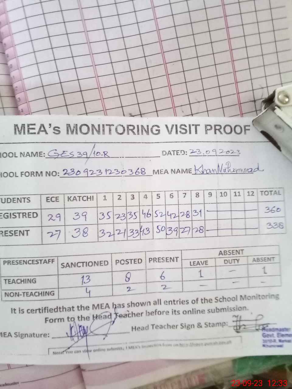 | Monitoring Date: 23-09-2023 | Start Time: 23-09-2023 11:51 AM | End Time: 23-09-2023 12:38 PM | Name of MEA: Kh**** Mu**** (S**** 05**** | |