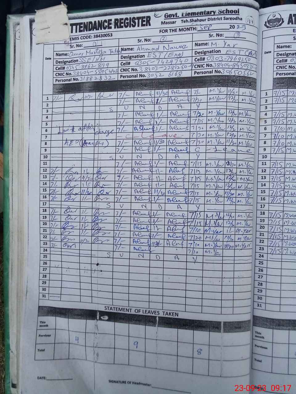 | Name: Mu**** Ra**** Na**** Designation: (School Headmaster's/Headmistress's) EST Phone/Cell Number: 03**** |