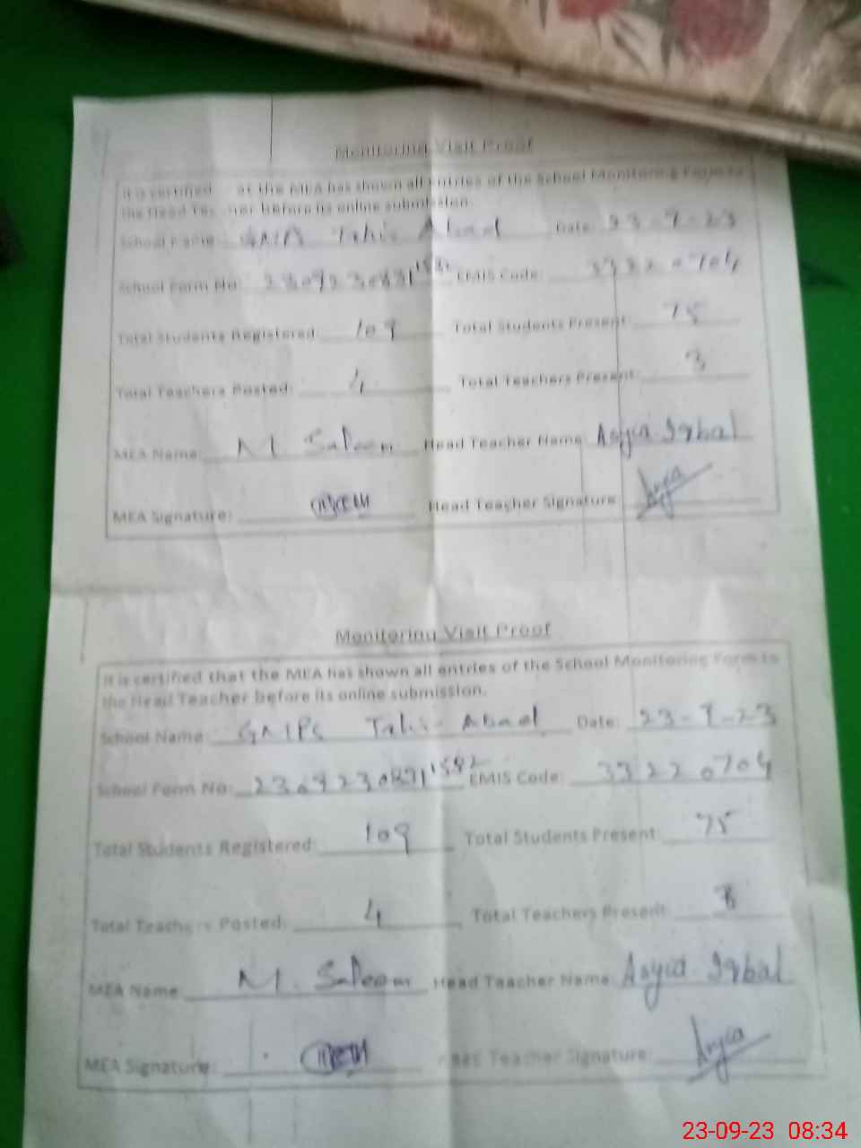 | EMIS Code: 33220704 | Name of School: GMPS TAHIR ABAD | |||
