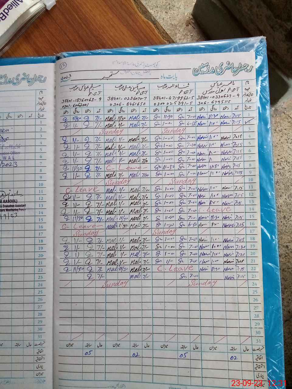 | CNIC | Full Name | Designation | R/C | Absence During Last Calender Month |