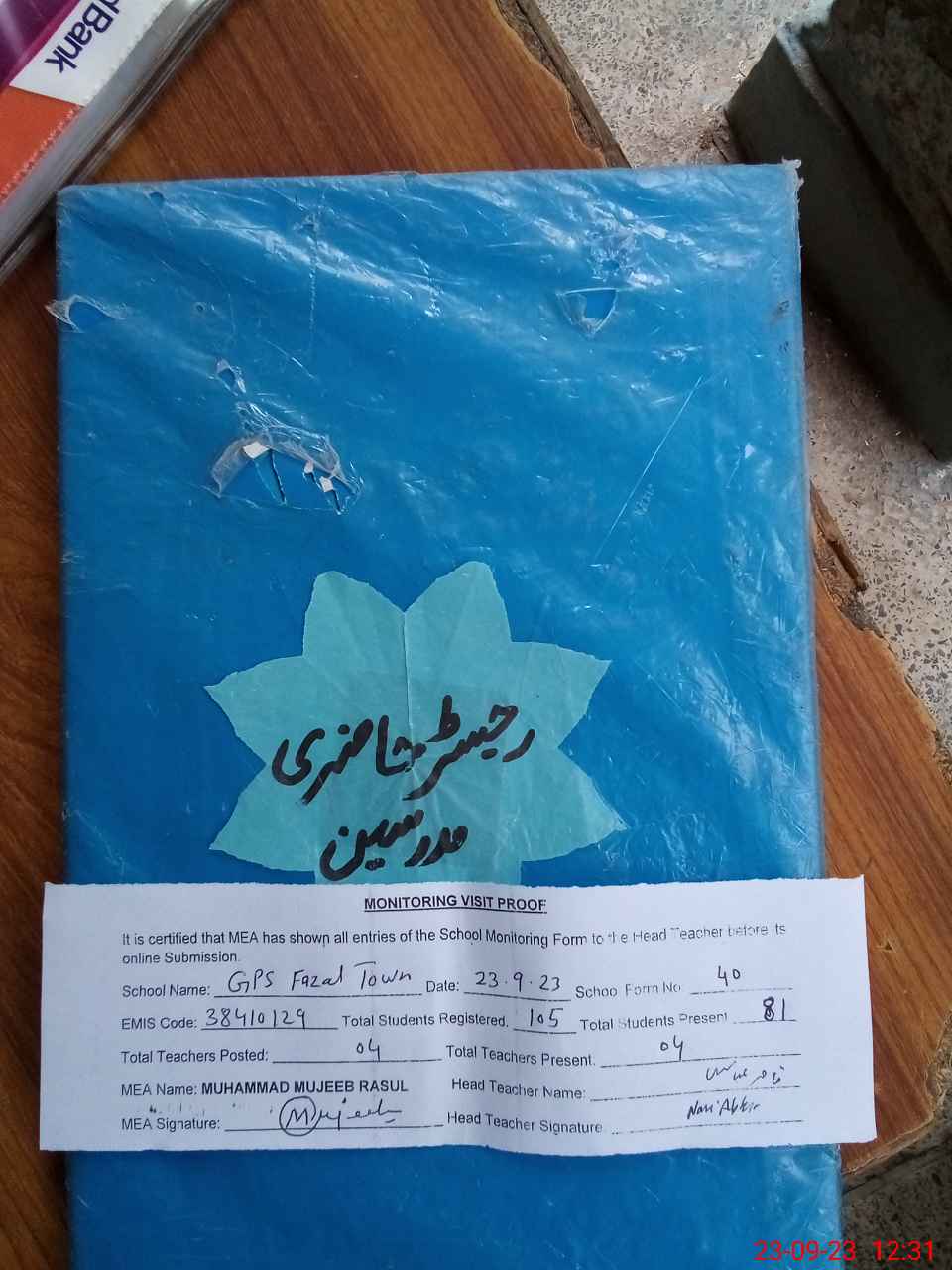 | Attendance Register | Head Teacher | MEA with School | Visit Proof |