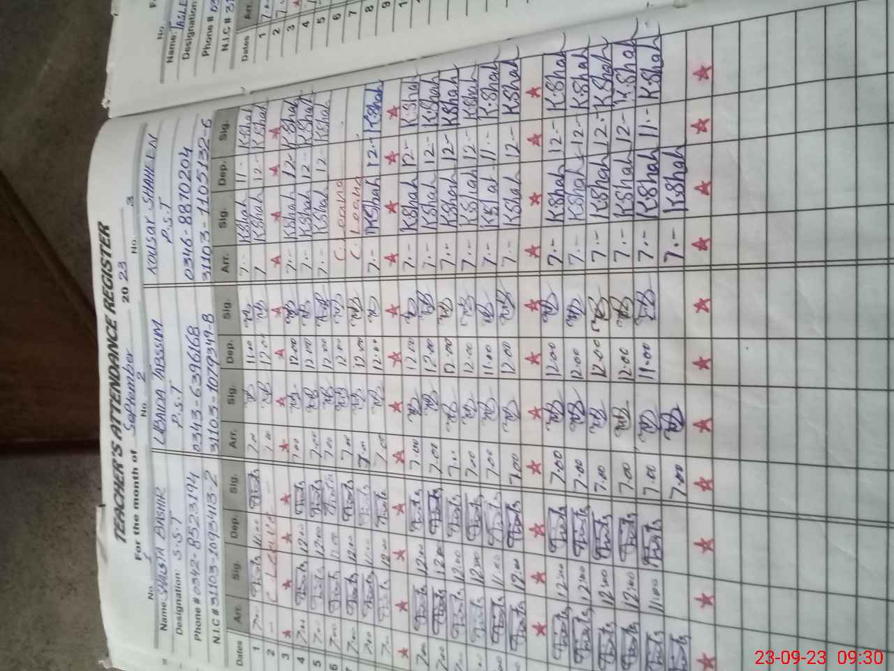 | Name: Sh**** Ba**** Designation: (School Headmaster's/Headmistress's) SST Phone/Cell Number: 03**** |