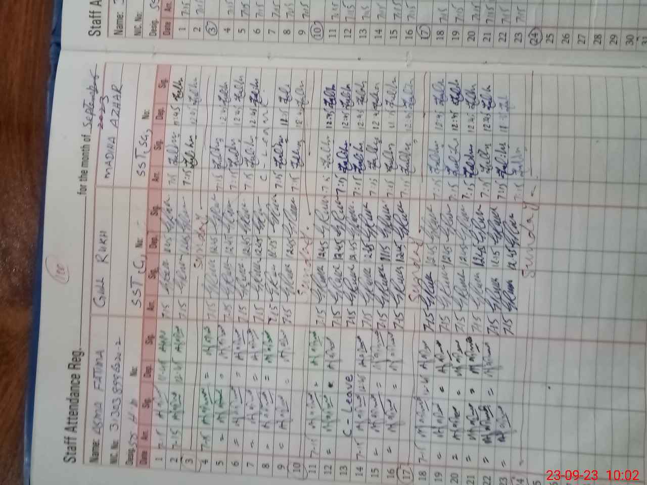 | CNIC | Full Name | Designation | R/C | Absence During Last Calender Month |