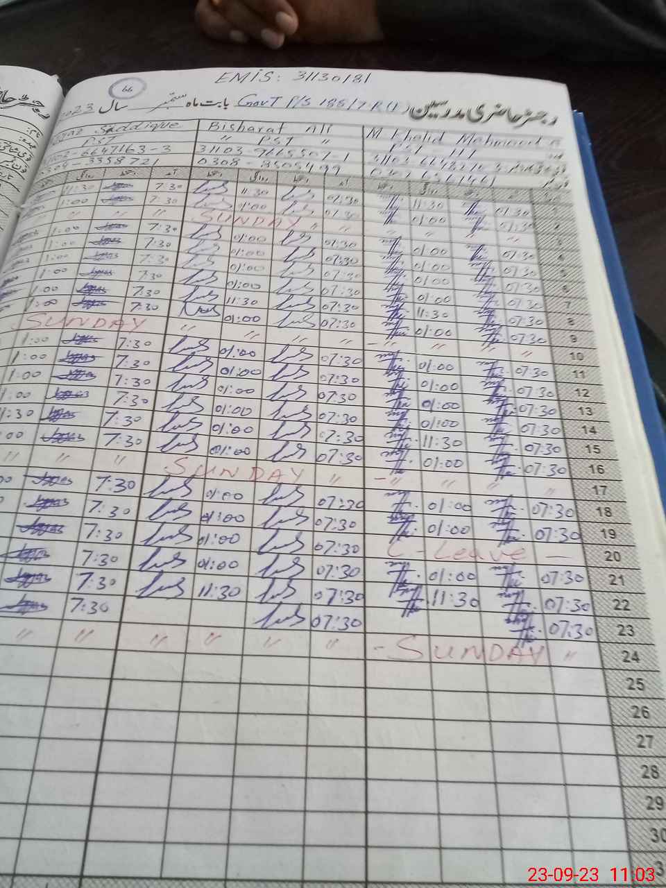| Name: Mu**** Kh**** Designation: (School Headmaster's/Headmistress's) PST Phone/Cell Number: 03**** |