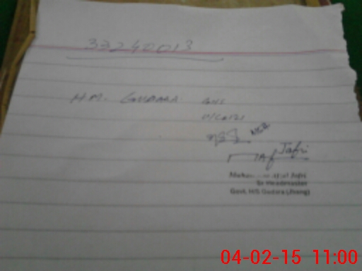 | Name: MAF**** JA**** Designation: (School Headmaster's/Headmistress's) HEADMASTER Phone/Cell Number: 03**** |