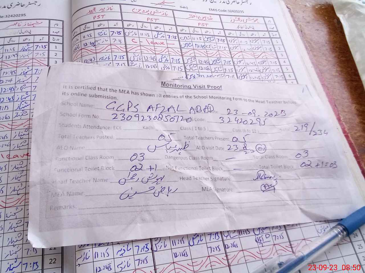 | EMIS Code: 32420295 | Name of School: GGPS AFZAL ABAD | |||