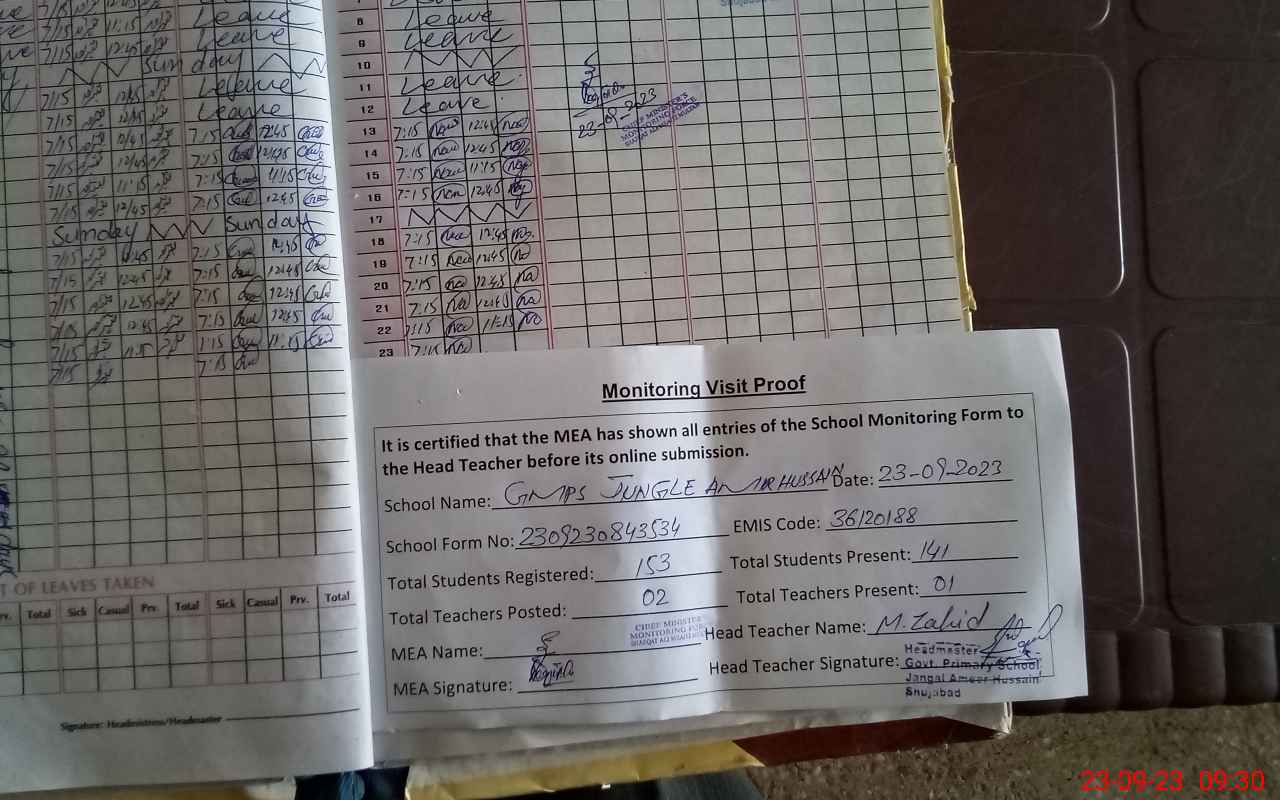 | EMIS Code: 36120188 | Name of School: GMPS JANGAL AMIR HUSSAIN (JALAL ABAD) | |||