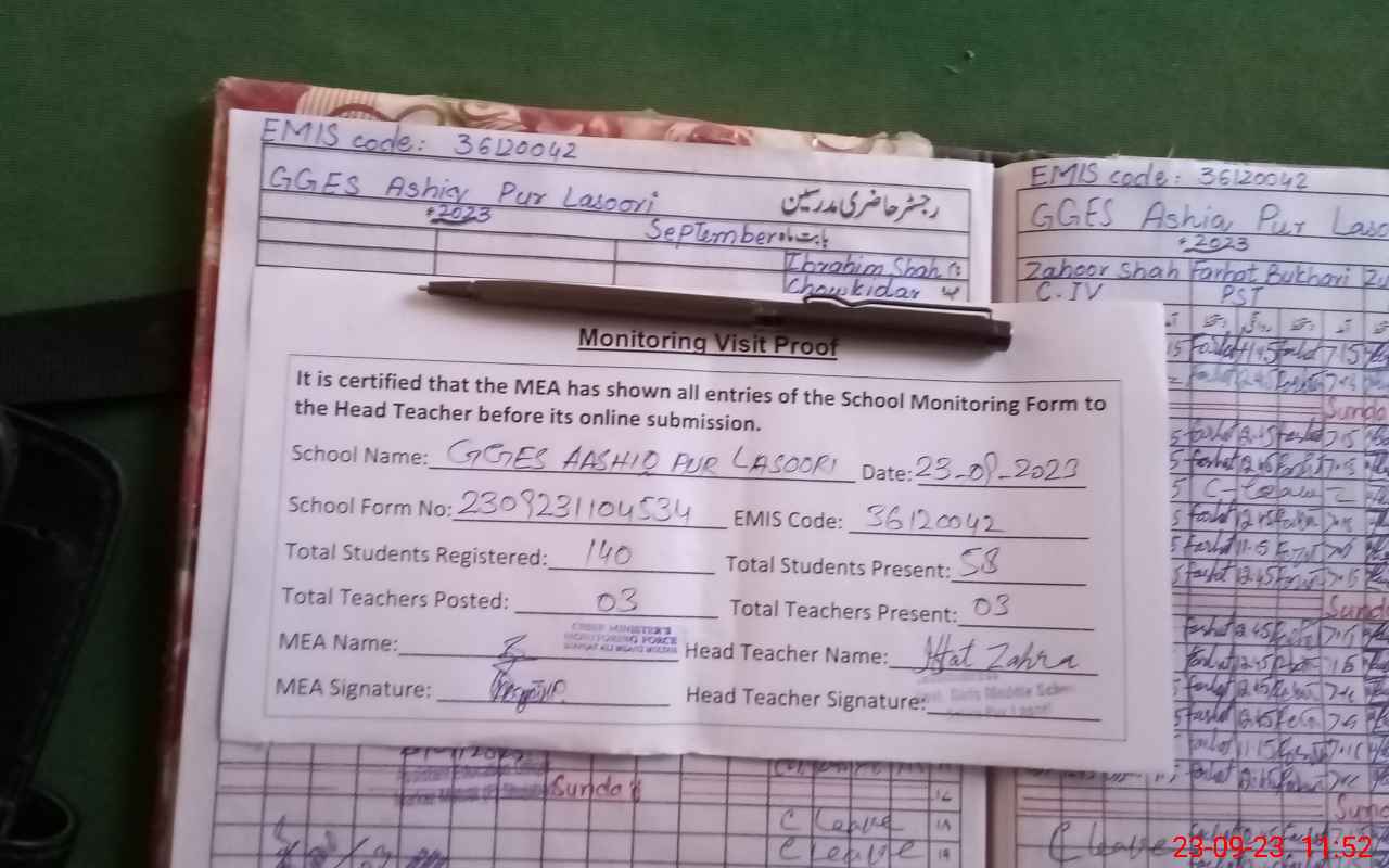 | EMIS Code: 36120042 | Name of School: GGES AASHIQ PUR LASOORI SHUJABAD | |||