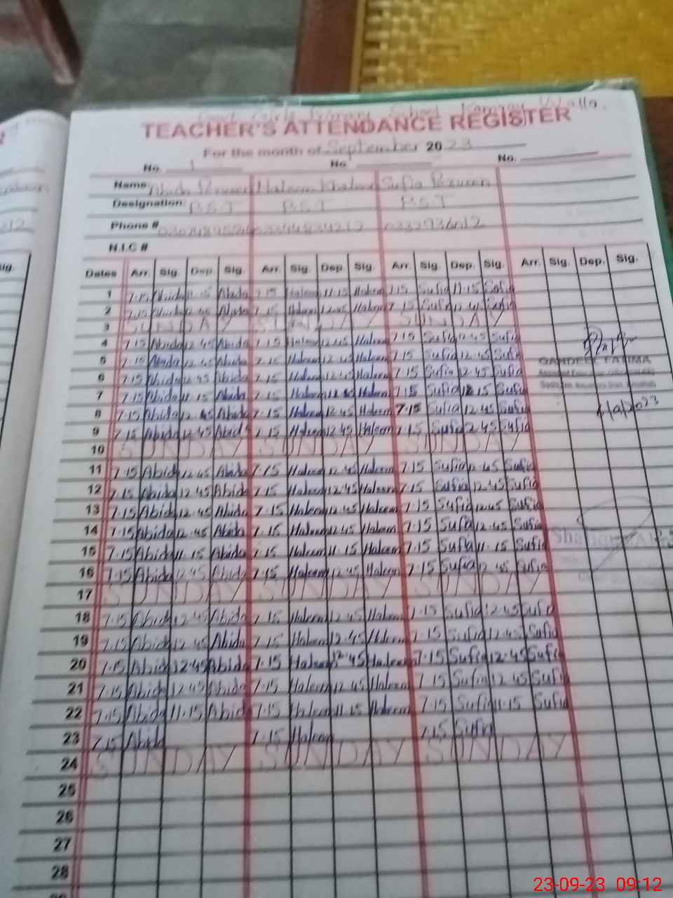 | Name: Ab**** Pe**** Designation: (School Headmaster's/Headmistress's) PST Phone/Cell Number: 03**** |