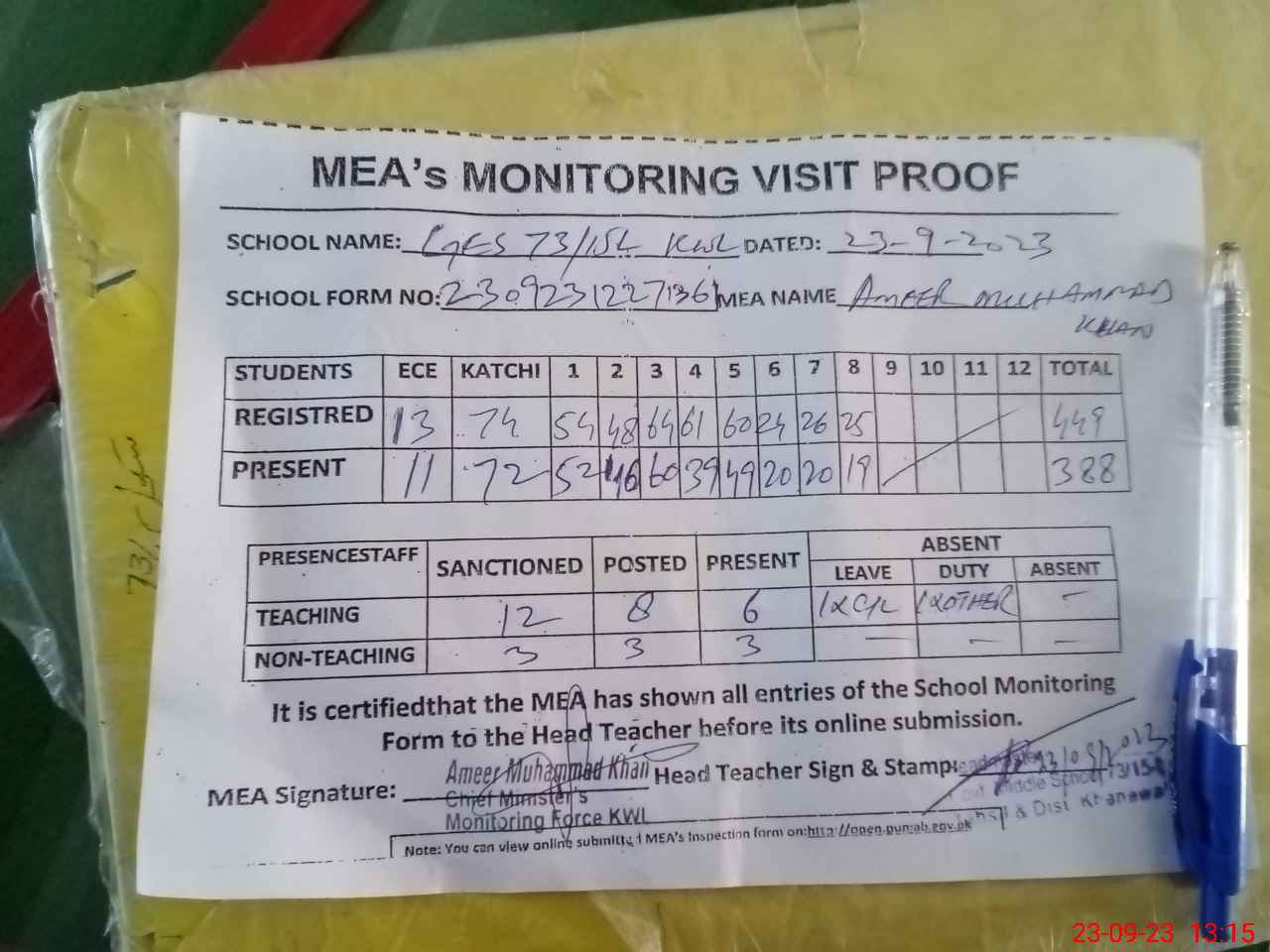 | EMIS Code: 36420653 | Name of School: GES 73/15-L KHANEWAL | |||