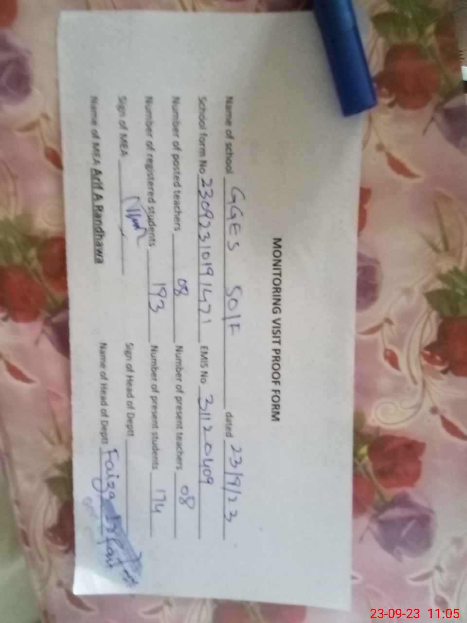 | EMIS Code: 31120409 | Name of School: GGES CHAK NO. 50/F | |||
