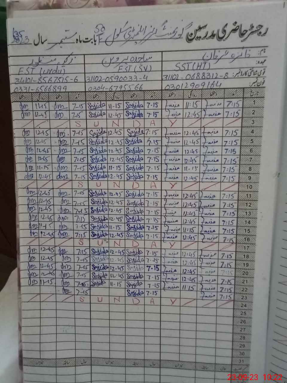 | Name: Fa**** Ir**** Designation: (School Headmaster's/Headmistress's) SST Sc Phone/Cell Number: 03**** |