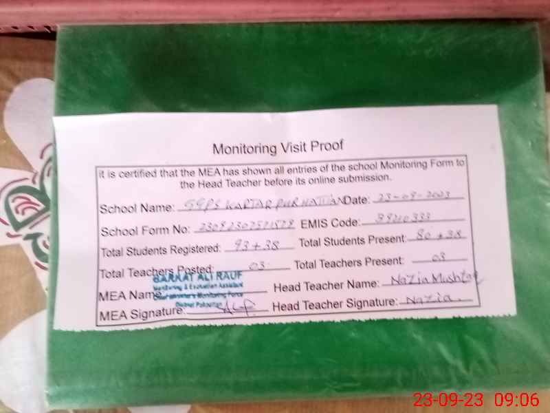| EMIS Code: 39210333 | Name of School: GGPS KARTAR PUR HATTIAN | |||