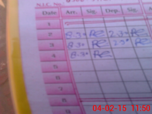 | Monitoring Date: 04-02-2015 | Start Time: 04-02-2015 11:16 AM | End Time: 04-02-2015 11:53 AM | Name of MEA: Z.**** M.Is**** | |