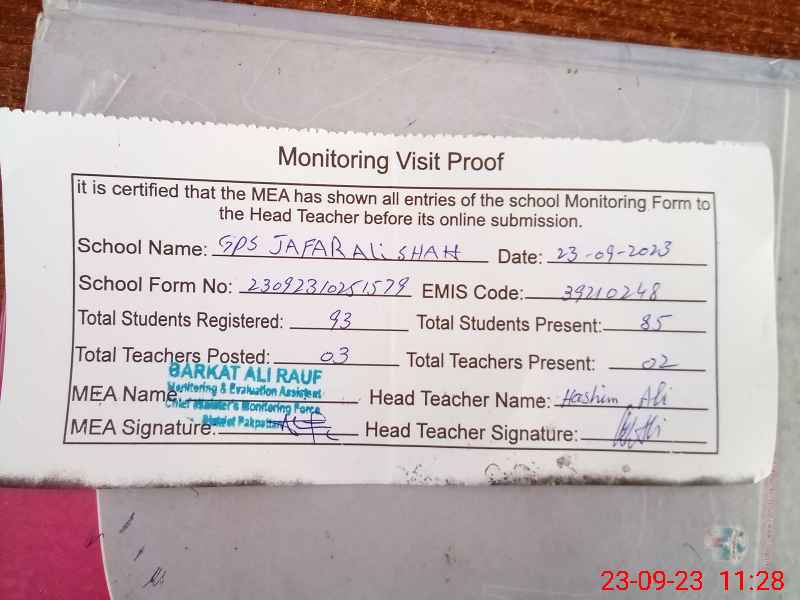 | EMIS Code: 39210248 | Name of School: GPS JAFAR ALI SHAH PO MALKA HANS | |||