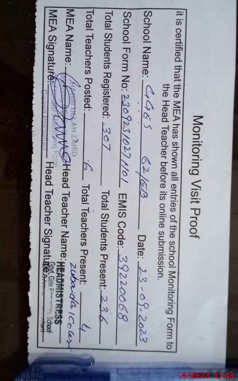 | Certified that this School was Inspected by the Undersigned MEA/DMO Today and the Information Stated Above is as Per Record. | |||||