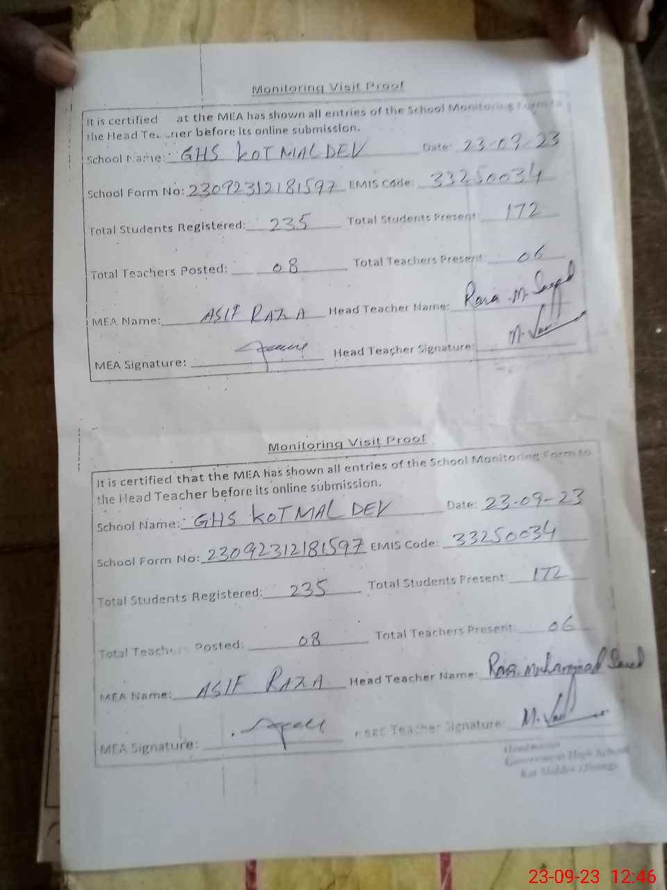 | EMIS Code: 33250034 | Name of School: GHS KOT MALDEV | |||